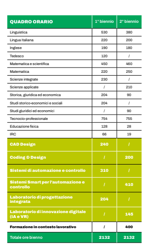 - L’inserimento dell’inglese tecnico in tutti gli anni e del tedesco nel primo biennio risponde alla logica di internazionalizzazione dei processi produttivi e alla mobilità Erasmus+.